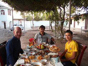 朝ご飯に向かうと、荷物を纏める最中の白髪のドイツ人女性にあった。仲間と一緒にタジキスタンを自転車で回っていると聞いて「怖くない?」と質問すると、「それどころではない」との答え。前日に盗難か紛失か解らないが、パスポートと財布が入っているポーチを無くしたって。 気がついて警察に申し出たら、何人もの警官は探してくれたり、周辺の村で聞き取り調査をやってくれたり、凄く親切だったがやはり見つからないまま。これから首都ドゥシャンベのドイツ大使館に行って、パスポートを再発行してもらうという。僕の経験から言うと、個人旅行で最も世界中を飛び回っているのはドイツ人である。それも原因かもしれないが、各地の大使館はきちんとパスポートを再発行してくれる。日本だと、再発行ではなく新規のパスポート発行になり戸籍謄本がないと無理なので、日本に直接戻る為の渡航証明をもらうことになる。それだと複数の国を巡る途中だと非常に困る。